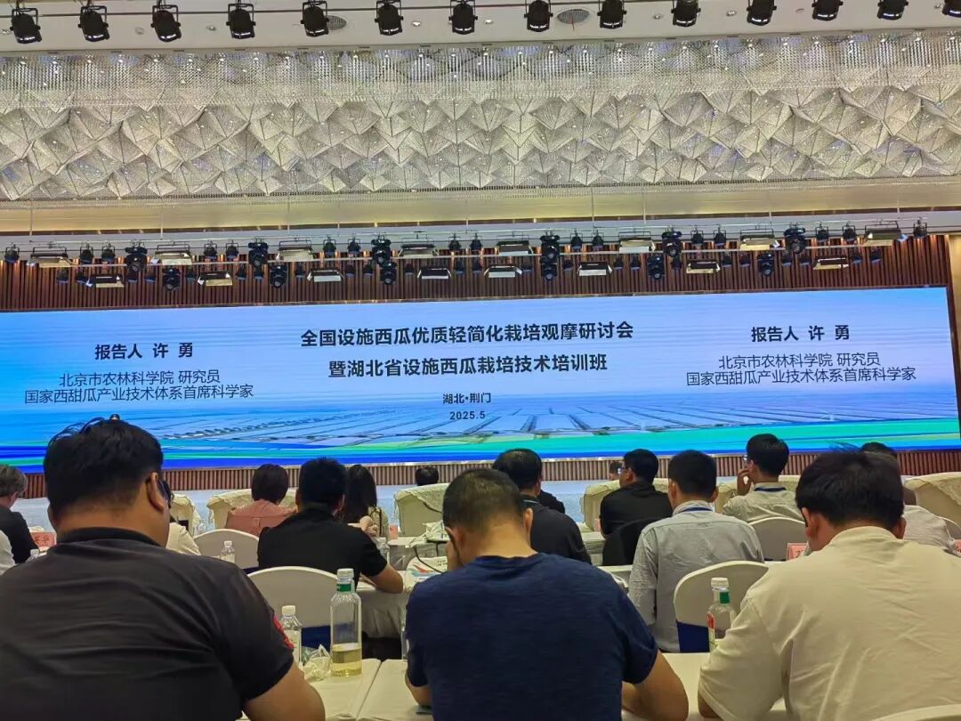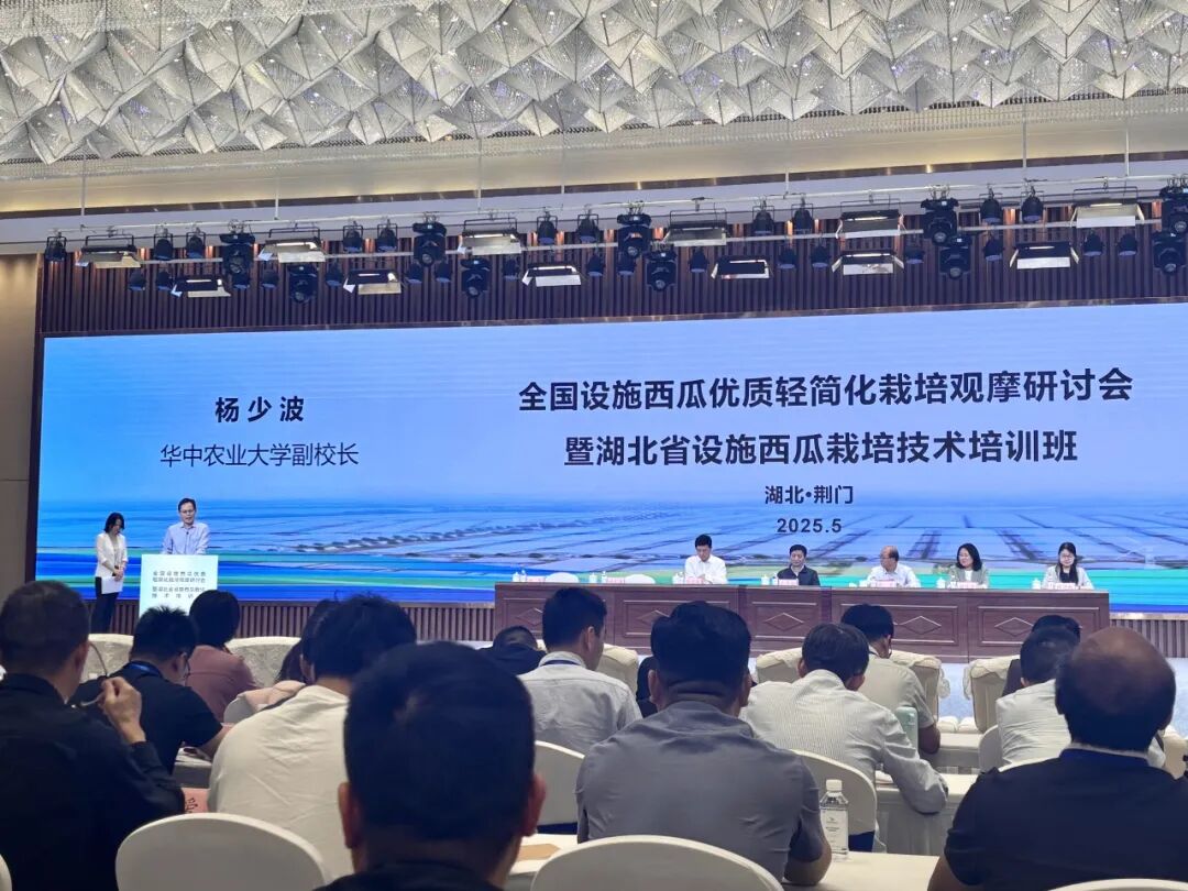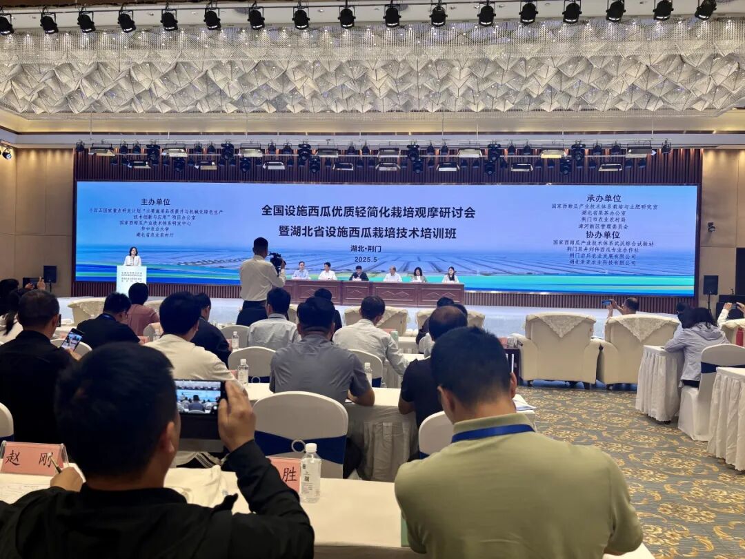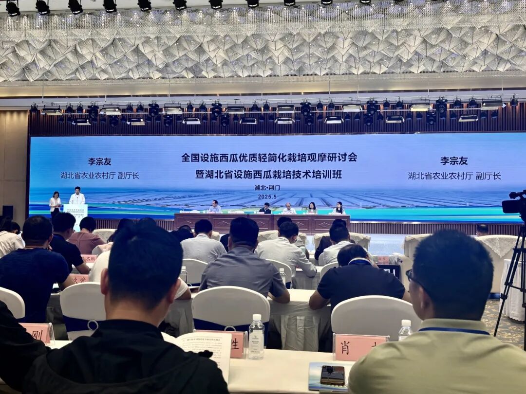 “全國設(shè)施西瓜優(yōu)質(zhì)輕簡化栽培觀摩研討會暨湖北省設(shè)施西瓜栽培技術(shù)培訓(xùn)班”5月9日-11日在荊門舉行。本次會議由“十四五”國家重點研發(fā)計劃“主要蔬菜品質(zhì)提升與機械化綠色生產(chǎn)技術(shù)創(chuàng)新與應(yīng)用”項目辦公室、國家西甜瓜產(chǎn)業(yè)技術(shù)體系研發(fā)中心、華中農(nóng)業(yè)大學(xué)、湖北省農(nóng)業(yè)農(nóng)村廳主辦,國家西甜瓜產(chǎn)業(yè)技術(shù)體系栽培與土肥研究室、湖北省果茶辦公室、荊門市農(nóng)業(yè)農(nóng)村局、漳河新區(qū)管理委員會等單位承辦,國家西甜瓜產(chǎn)業(yè)技術(shù)體系武漢綜合試驗站、荊門啟兵農(nóng)業(yè)發(fā)展有限公司等單位協(xié)辦。